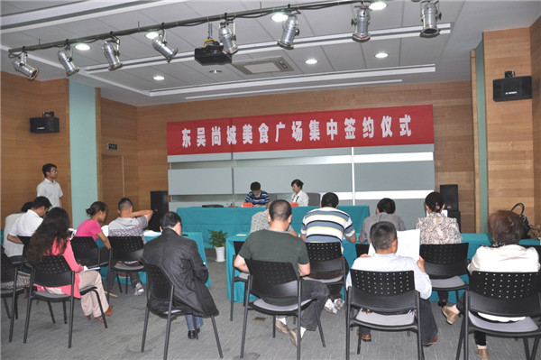 繼園區(qū)公舍配套商業(yè)樓東吳尚城商鋪火爆簽約之后,一樓美食廣場再度掀起搶租熱潮。5月12日下午,美食廣場集中簽約活動在管委會一樓會議室火熱啟動,來自新民集、市區(qū)的眾多客戶現(xiàn)場簽約,現(xiàn)場一鋪難求,當天下午共簽約出租商戶近20家。