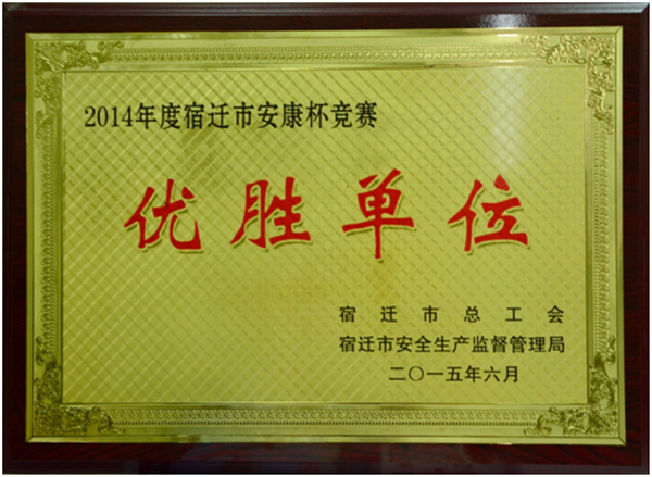 近日,公司獲評宿遷市總工會和宿遷市安全生產(chǎn)監(jiān)督管理局聯(lián)合頒發(fā)的2014年度宿遷市安康杯競賽優(yōu)勝單位稱號。獲此殊榮的本次表彰全市共有18家單位,開發(fā)公司也是園區(qū)唯一一家獲得優(yōu)勝單位稱號。