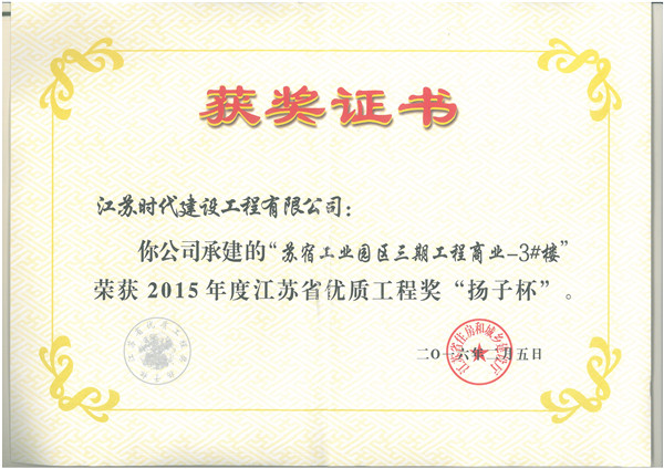 江蘇省“揚(yáng)子杯”優(yōu)質(zhì)工程獎(jiǎng)是我省建設(shè)工程質(zhì)量最高榮譽(yù)獎(jiǎng),為省人民政府確定的行政獎(jiǎng)勵(lì), 代表了我省當(dāng)前工程建設(shè)質(zhì)量的最高水平。揚(yáng)子杯每年評(píng)審一次,評(píng)選對(duì)象為我省境內(nèi)、已經(jīng)建成并投入使用的各類建設(shè)工程。該獎(jiǎng)的設(shè)立旨在促進(jìn)建設(shè)和施工單位提高工程質(zhì)量水平、增強(qiáng)建筑精品意識(shí)。