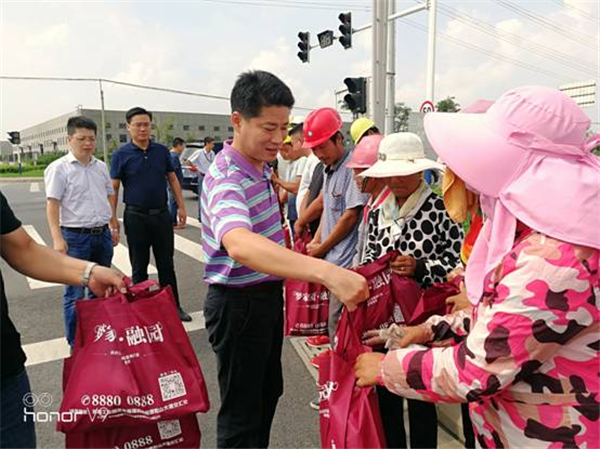 8月16日上午,開發(fā)公司副總裁劉建華帶領(lǐng)市政工程部、房建工程部和行政人事部部門負(fù)責(zé)人來到公司項(xiàng)目工地,現(xiàn)場(chǎng)慰問了奮戰(zhàn)在高溫一線的企業(yè)員工和建筑工人,并親自給他們遞上了毛巾、肥皂、洗發(fā)水、清涼油等防暑降溫物品。