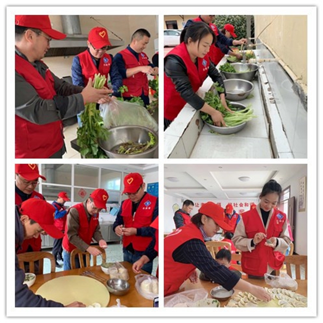 大家剛到敬老院放下為老人帶來(lái)的食用油、牛奶、豆奶粉、餅干等食品后就立即分組忙碌起來(lái)。有的洗菜、切菜、做餃子餡、包餃子;有的為老人表演節(jié)目、陪老人聊天;工程管理專業(yè)的志愿者幫助老人檢修房屋……原本沉寂的敬老院頓時(shí)熱鬧了起來(lái)。