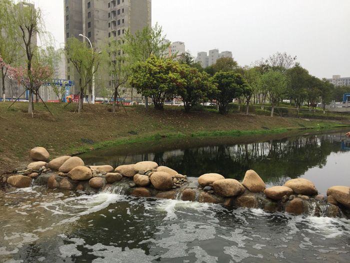 本工程造價(jià)約280萬(wàn)元,主要對(duì)環(huán)形景觀帶進(jìn)行岸線(xiàn)規(guī)整、雨水口護(hù)砌、河道清淤,并種植沉水、挺水植物,設(shè)置景觀攔水壩及人工填料,改善河道水質(zhì),提升景觀效果。