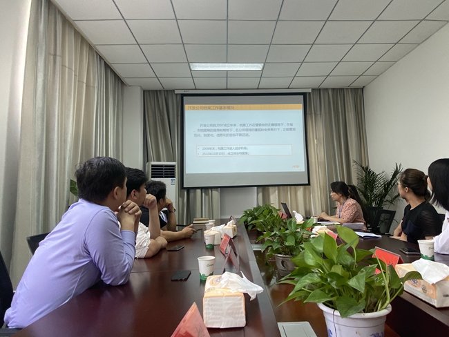 6月19日下午,中電建江蘇激光智造發(fā)展有限公司劉攀總經(jīng)理一行10人來(lái)園區(qū)參觀學(xué)習(xí)檔案工作。園區(qū)檔案中心和開(kāi)發(fā)公司檔案工作人員接待了劉攀一行。