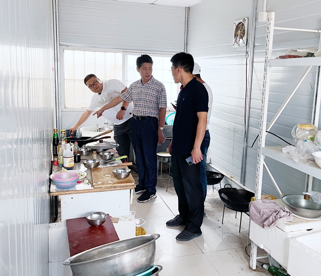 檢查組一行先后檢查了鏡泊湖路東延段、蘇宿園區(qū)消防站和棲霞山路污水提升工程等在建工程項目部。對廚房使用的鋼瓶、灶具以及配件等進行詳細檢查,檢查組檢查發(fā)現(xiàn)存在個別鋼瓶過期、角閥漏氣以及軟管老化等安全隱患,現(xiàn)場責成責任單位立即進行整改。