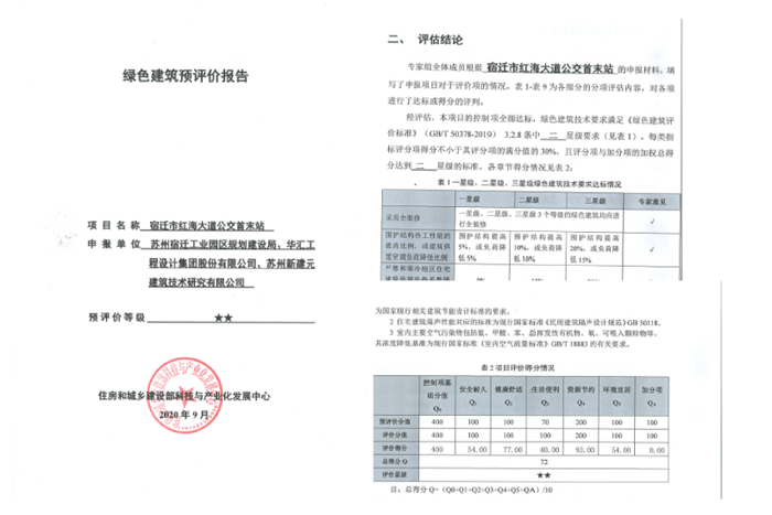 由開發(fā)公司代建的紅海大道公交首末站項目順利通過了住房和城鄉(xiāng)建設(shè)部科技與產(chǎn)業(yè)發(fā)展中心組織的第十四批綠色建筑預(yù)評價,并獲得預(yù)評價報告。該項目是按照最新《綠色建筑評價標準》(GB/T 50378-2019,以下簡稱“新國標”)進行評價的二星級綠色建筑。