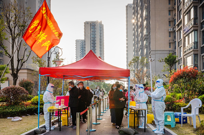 一支黨員先鋒隊,全力打贏疫情防控阻擊戰(zhàn) 疫情就是命令。為有序開展園區(qū)大規(guī)模區(qū)域核酸檢測工作,園區(qū)機關、企事業(yè)單位黨員干部積極響應黨工委號召,火速集結,爭分奪秒開赴核酸檢測預定點位。從凌晨的物資準備、早上5點的核酸檢測,到夜間的“掃樓行動”,忙碌地穿梭于樓棟之間的黨員突擊隊員,堅決落實好“不落一戶,不漏一人”的防控要求。共產黨員、園區(qū)安委辦綜合協(xié)調與巡查督查處副處長朱婷婷說:“在這個疫情防控的緊要時期,作為一名共產黨員,拉得出、打得響,是我對自己最基本的要求。”在履行防控職責同時,黨員志愿者和醫(yī)護人員跨前一步,為社區(qū)獨居老人、行動不便老人提供送檢上門等貼心服務,受到群眾廣泛點贊。