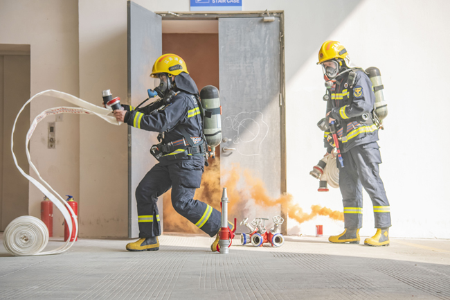 此次演練完全按照“真實(shí)模擬火場(chǎng)、現(xiàn)場(chǎng)領(lǐng)受任務(wù)、無(wú)預(yù)案戰(zhàn)斗展開(kāi)”模式進(jìn)行,災(zāi)情假設(shè)為B10二層服裝加工企業(yè)起火,該企業(yè)立即啟動(dòng)自救預(yù)案并撥打消防報(bào)警電話。園區(qū)消防應(yīng)急救援大隊(duì)接警后,一次性調(diào)派2輛消防車(chē)11名消防戰(zhàn)斗員趕赴處置,演練過(guò)程中按照救人第一的指導(dǎo)思想,科學(xué)施救,內(nèi)攻滅火、內(nèi)攻搜救、外圍控火、緊急撤離等技戰(zhàn)術(shù)措施控制火勢(shì),消滅火災(zāi)。