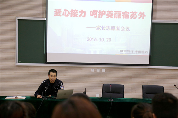 校園安全是學(xué)校發(fā)展的首要工作,更是創(chuàng)建文明校園的重要保障。近日,宿遷市蘇州外國語學(xué)校召開了家長志愿者會議,宿遷市交警支隊(duì)干警和五十名愛心家長以及學(xué)校相關(guān)行政人員參加了本次活動,大家齊聚一堂,共同討論并確定了本學(xué)期的家長志愿者工作安排。